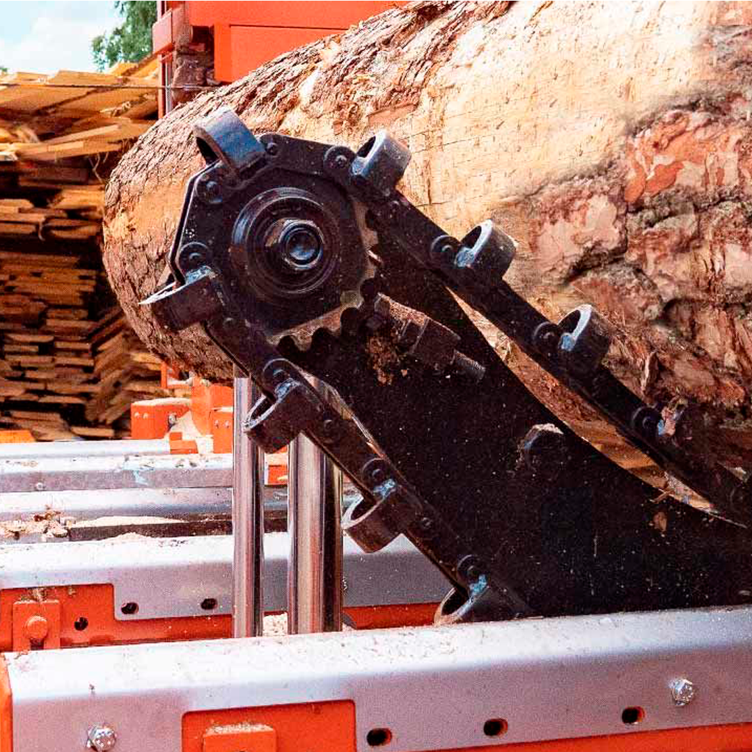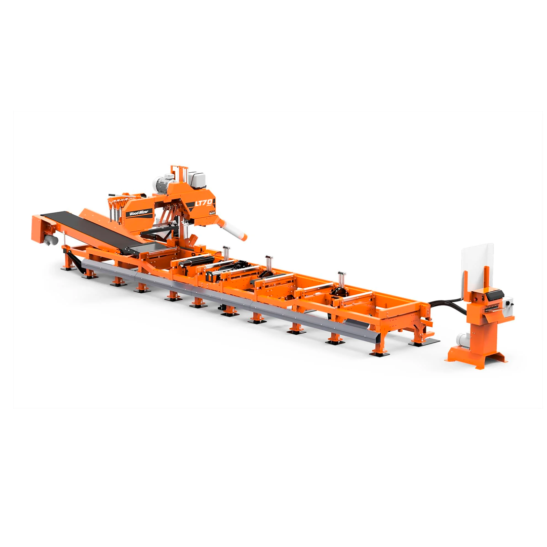 El LT70 HEAVY-DUTY combina la reconocida cabeza de corte LT70 con la bancada industrial del WM4000 para crear un aserradero profesional capaz de soportar turnos prolongados y troncos de hasta 3 t. Su garganta de 73 cm permite producir tablones anchos con un corte fino de sierra delgada.
