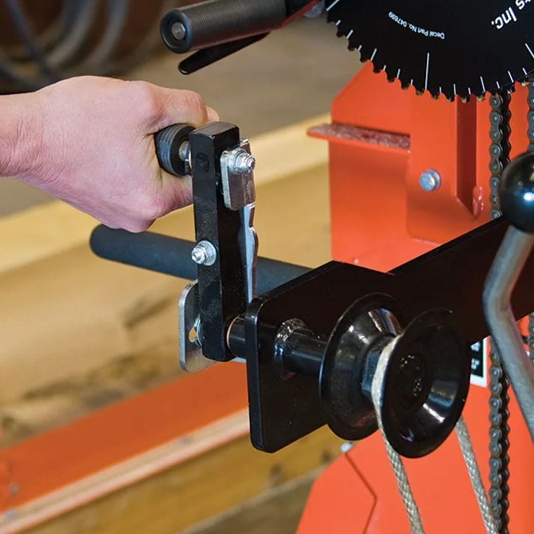 Incluye un armazón de bancada más ancho y robusto, rodillos en los seis soportes laterales, soportes laterales reforzados y soportes de cabezal más altos y robustos. Su cabezal de empuje manual incorpora manivela con 32 bloqueos y escala de cuarto, mientras que la sierra de 447 cm y los rodillos guía aseguran cortes rectos y delgados, maximizando el rendimiento de cada tronco.