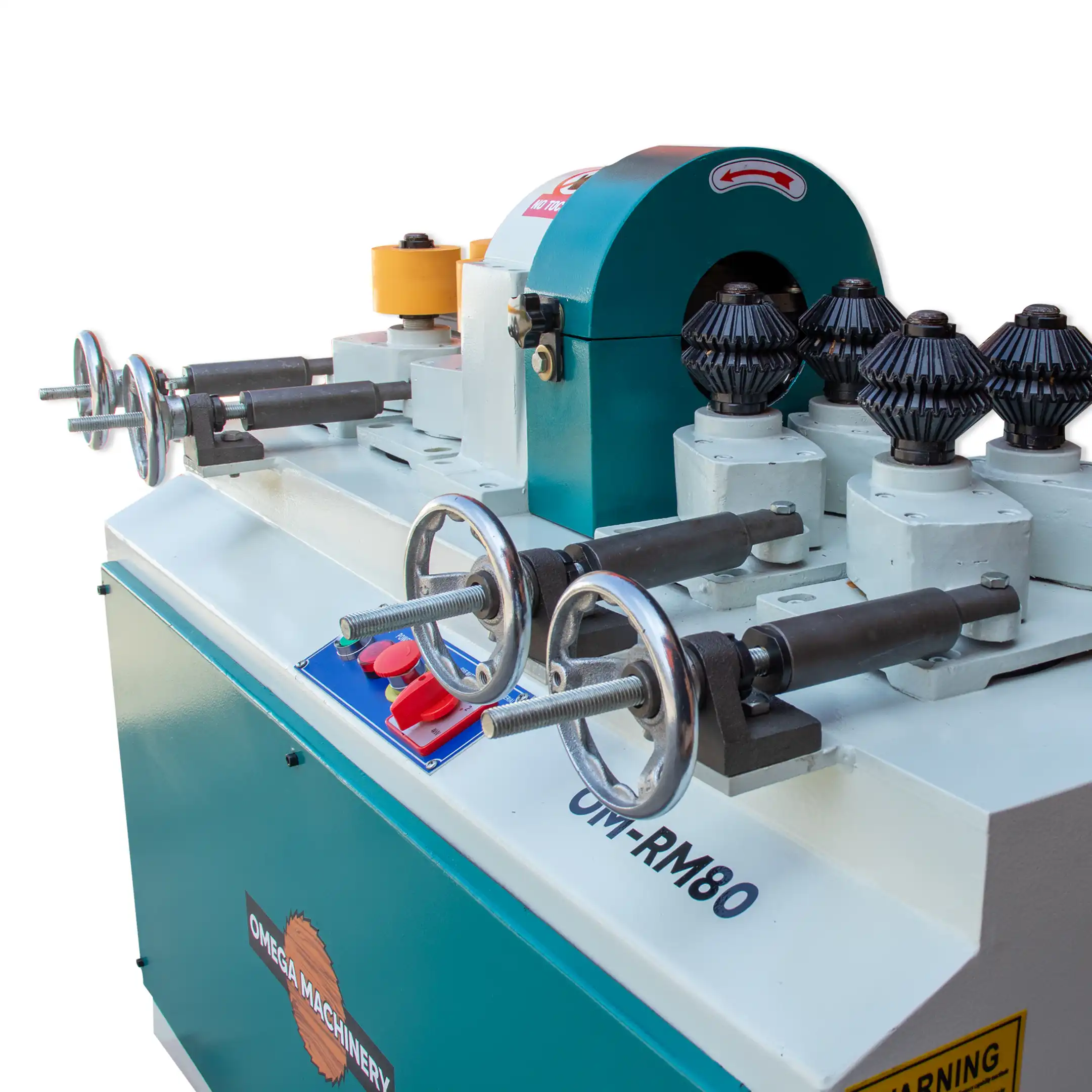 La OM-RM80 convierte palos pre-dimensionados en varillas perfectamente redondas de diámetro 22 mm a 80 mm. Su cabezal de corte rígido mantiene la concentricidad y logra un acabado uniforme en una sola pasada.