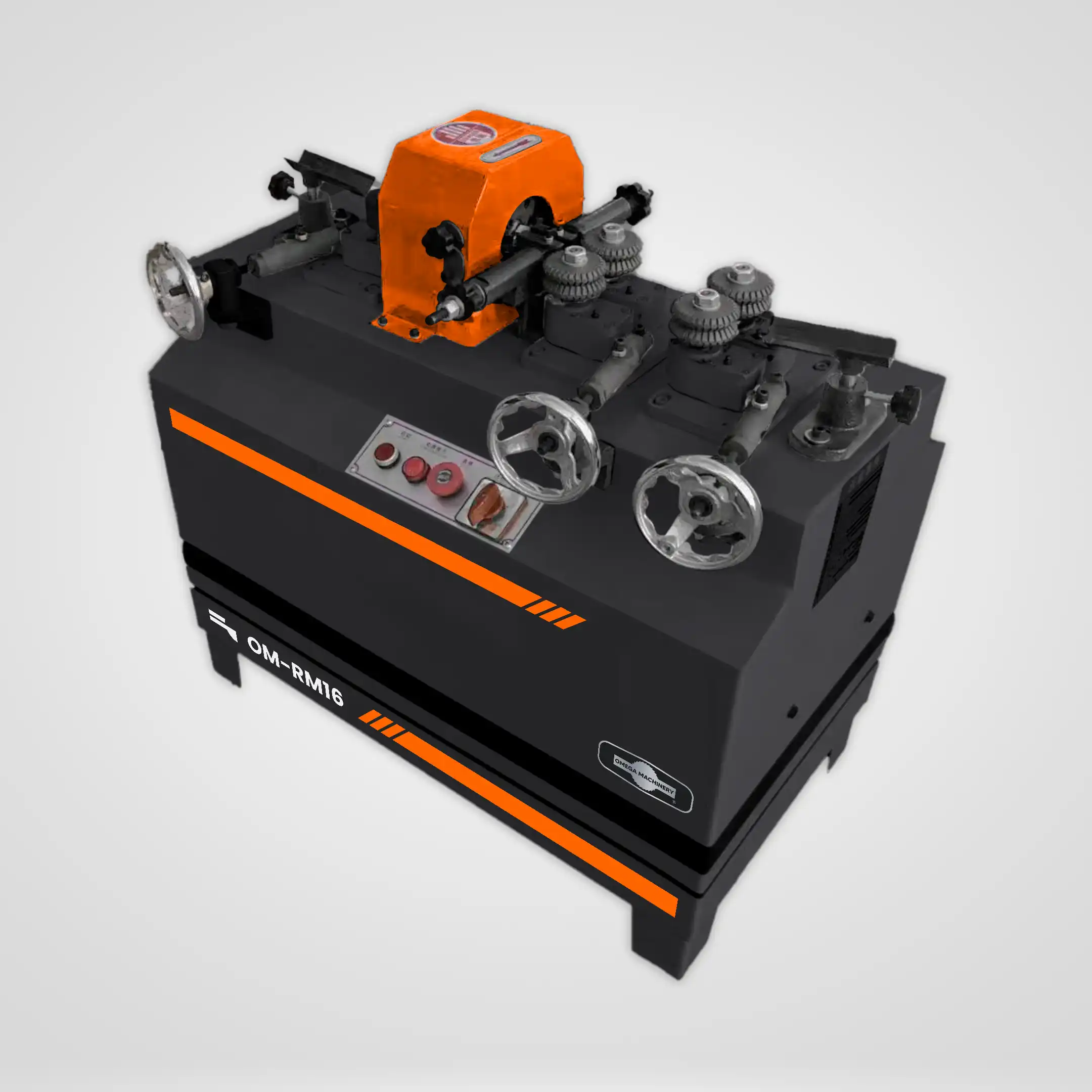 La OM-RM16 convierte palos ya dimensionados en varillas perfectamente redondas de diámetro 6 mm a 16 mm. Su cabezal de corte estable garantiza concentricidad y un acabado uniforme en una sola pasada.