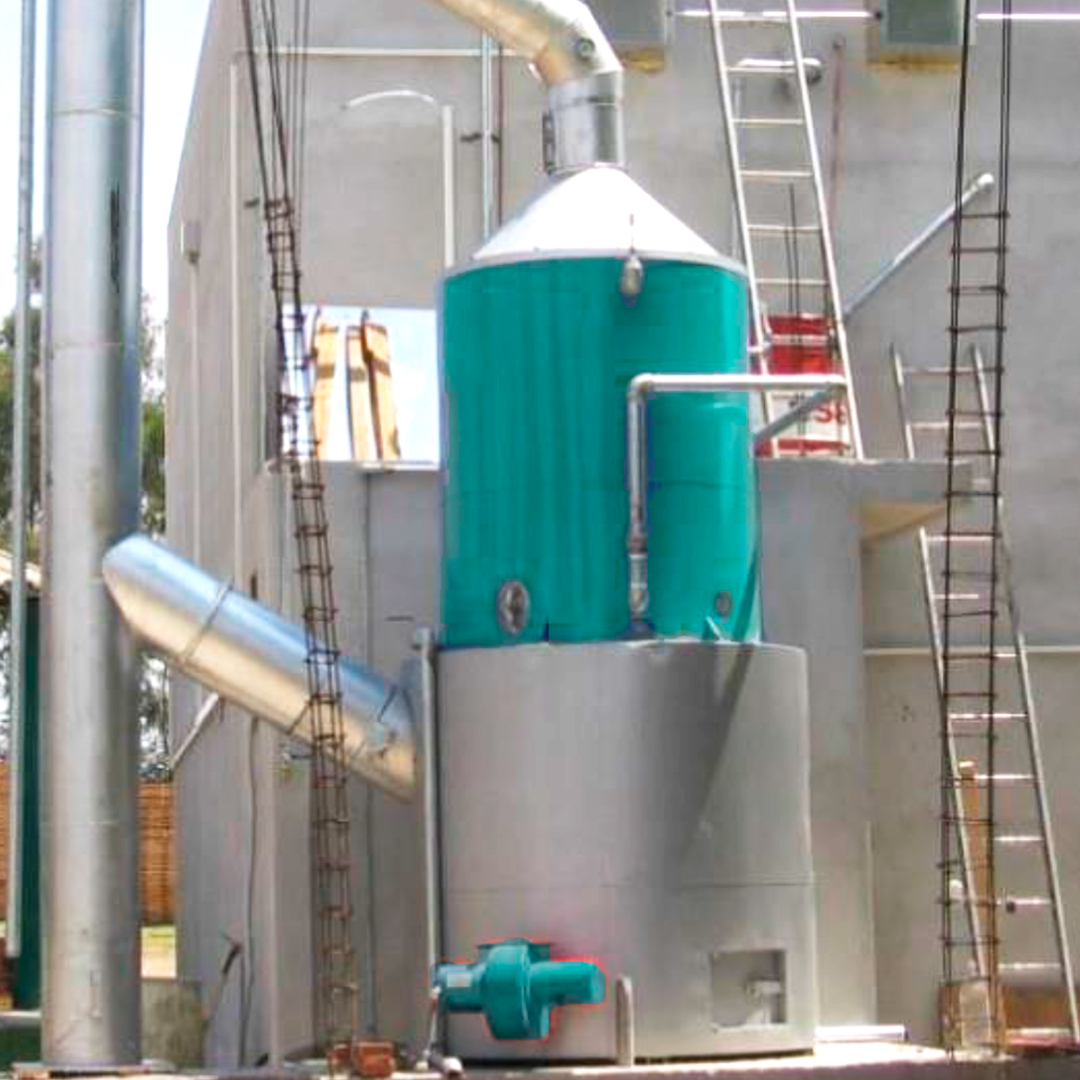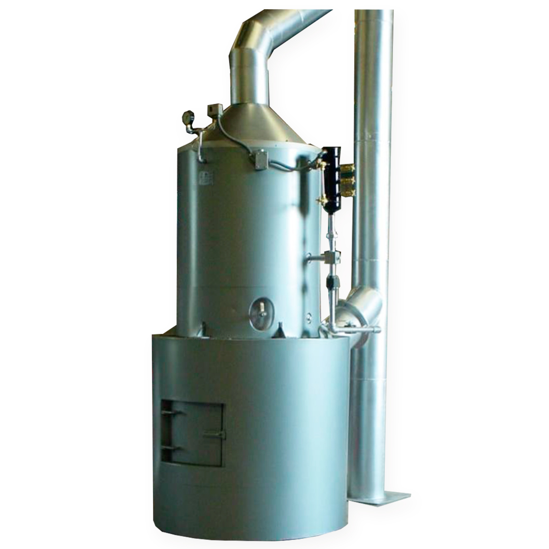 Posición vertical, tipo ígneo tubular de 45 C.C. (Caballos Caldera) de capacidad. De un paso en los gases de la combustión, tipo paquete. Para trabajar en forma semiautomática hasta una temperatura de 95°C, para usar como combustible a base de DESPERDICIOS DE MADERA.