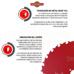 Geometría de diente ATB que garantiza acabados limpios y reducción de astillado.