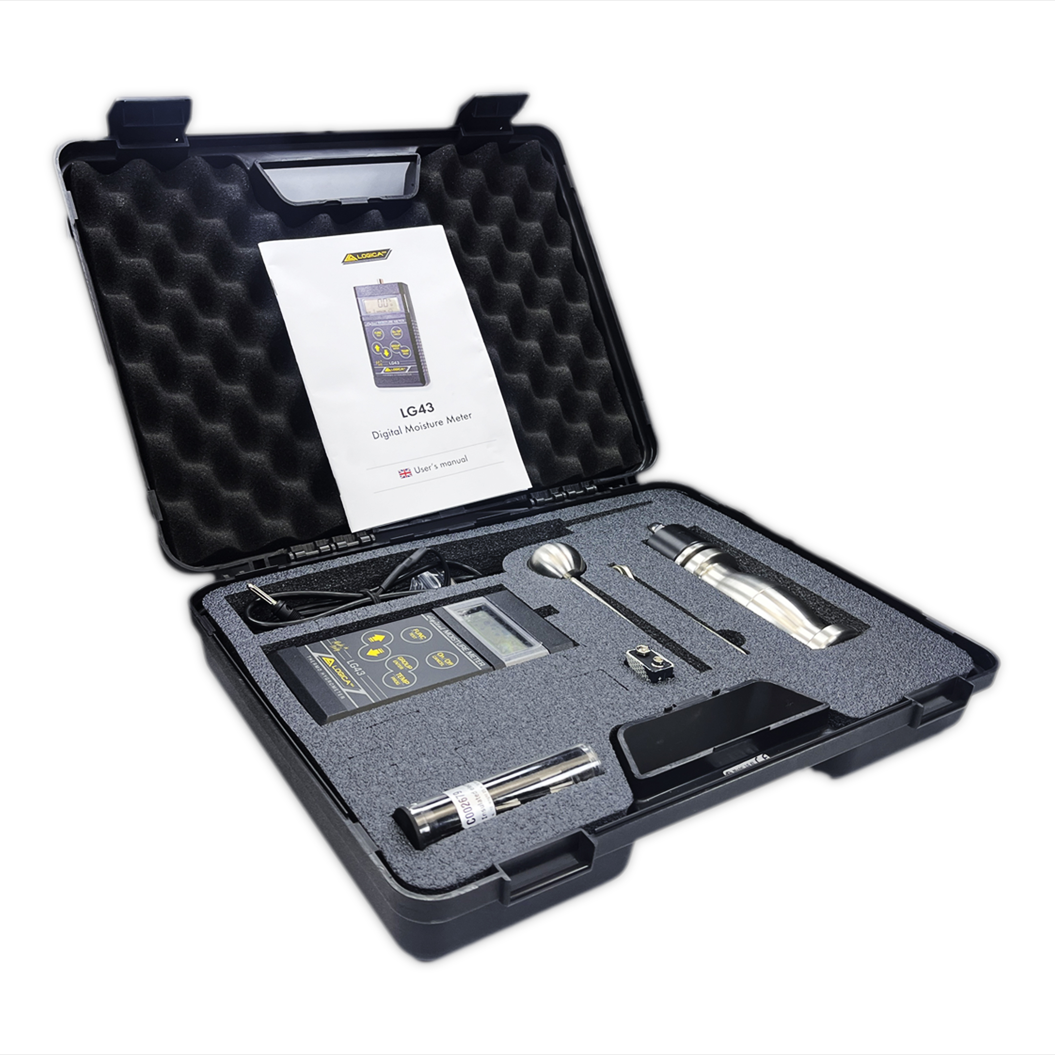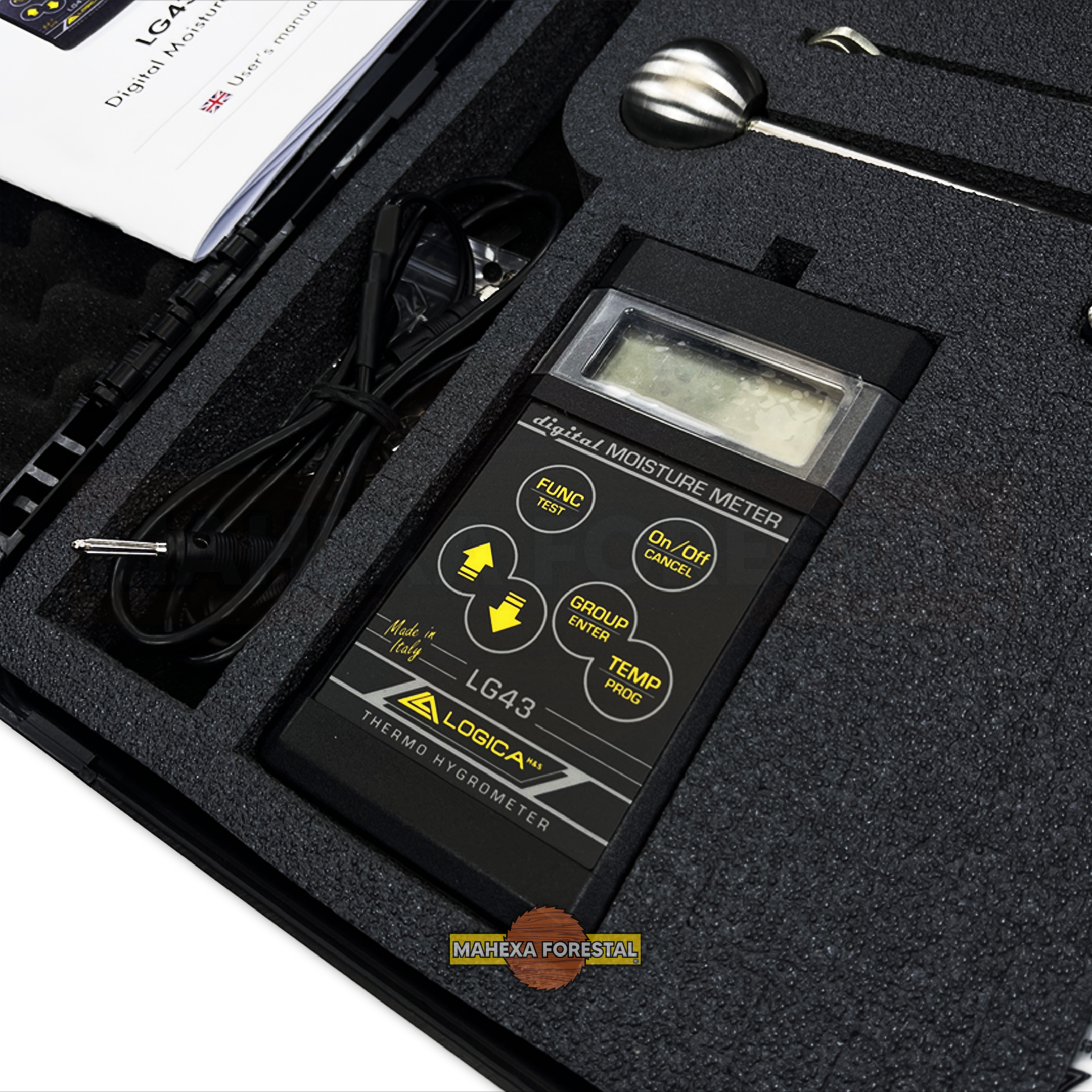 Este higrómetro digital LG-LG43M, de LOGICA H&S, ofrece una medición de humedad en madera rápida y profunda gracias a su martillo porta-electrodos, que garantiza una inserción consistente y repetible. Su microprocesador compensa automáticamente la temperatura, eliminando la necesidad de tablas externas y asegurando precisión en todo momento.