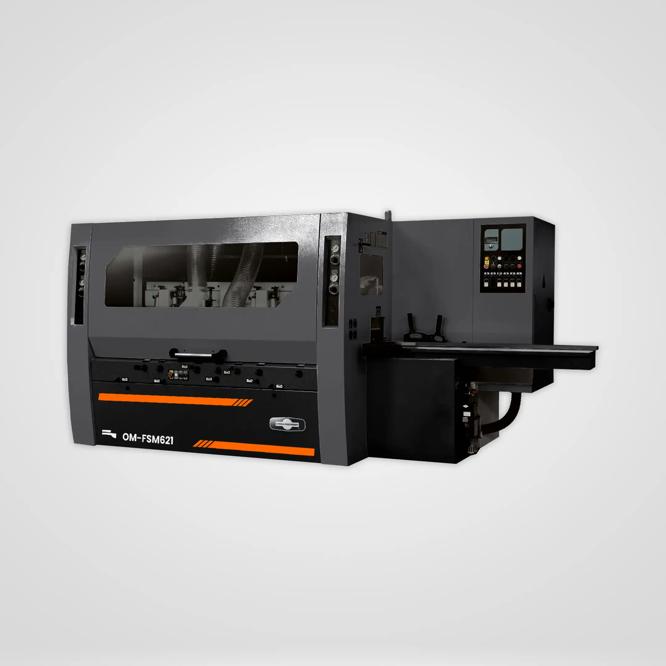 La molduradora de cuatro caras con 6 ejes y capacidad de hasta 210 mm de ancho destaca por su versatilidad y potencia, combinando cepillado y moldurado en piezas de madera con diferentes perfiles y espesores. La OM-FSM621 integra dos ejes horizontales inferiores, dos verticales y dos horizontales superiores, permitiendo realizar operaciones más complejas en una sola pasada y logrando acabados de alta calidad.