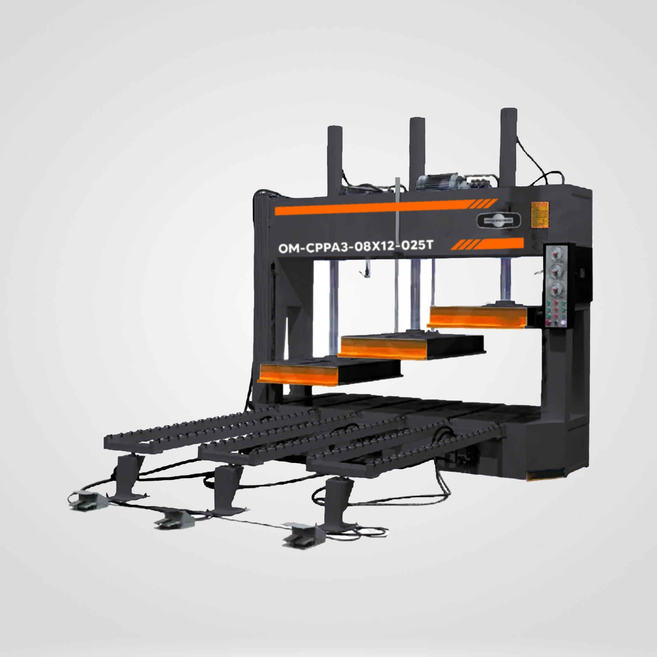La OM-CPPA3-12X08-025T es una prensa de platos fríos diseñada para satisfacer las demandas de prensado y laminado sin aporte térmico en la industria maderera. Gracias a su construcción robusta y a la distribución uniforme de presión, garantiza acabados de alta calidad y reduce tiempos de ciclo.