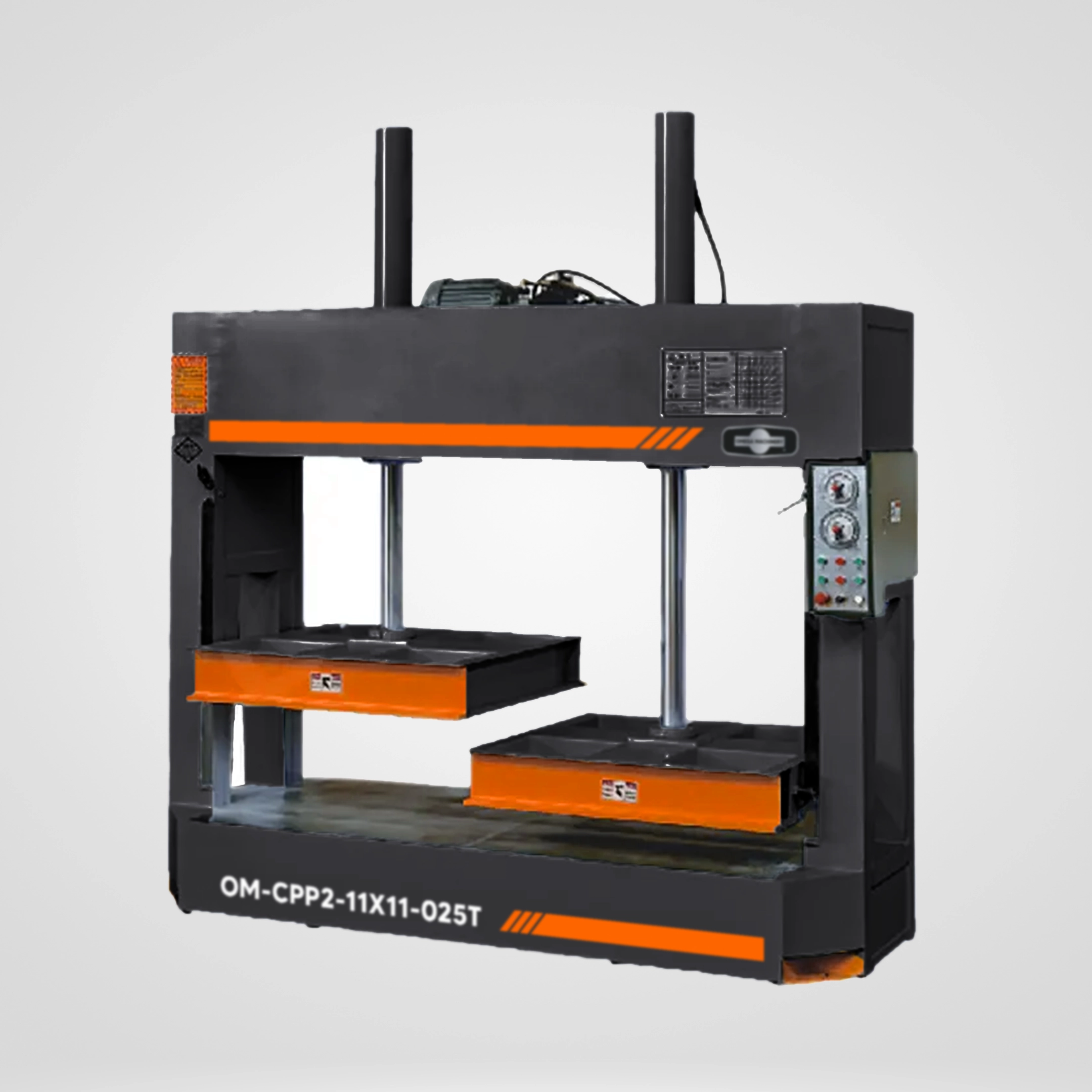 Prensa de Platos Fríos de 110 cm x 110 cm de 25 toneladas 2 Aperturas Omega Machinery OM-CPP2-11X11-025T