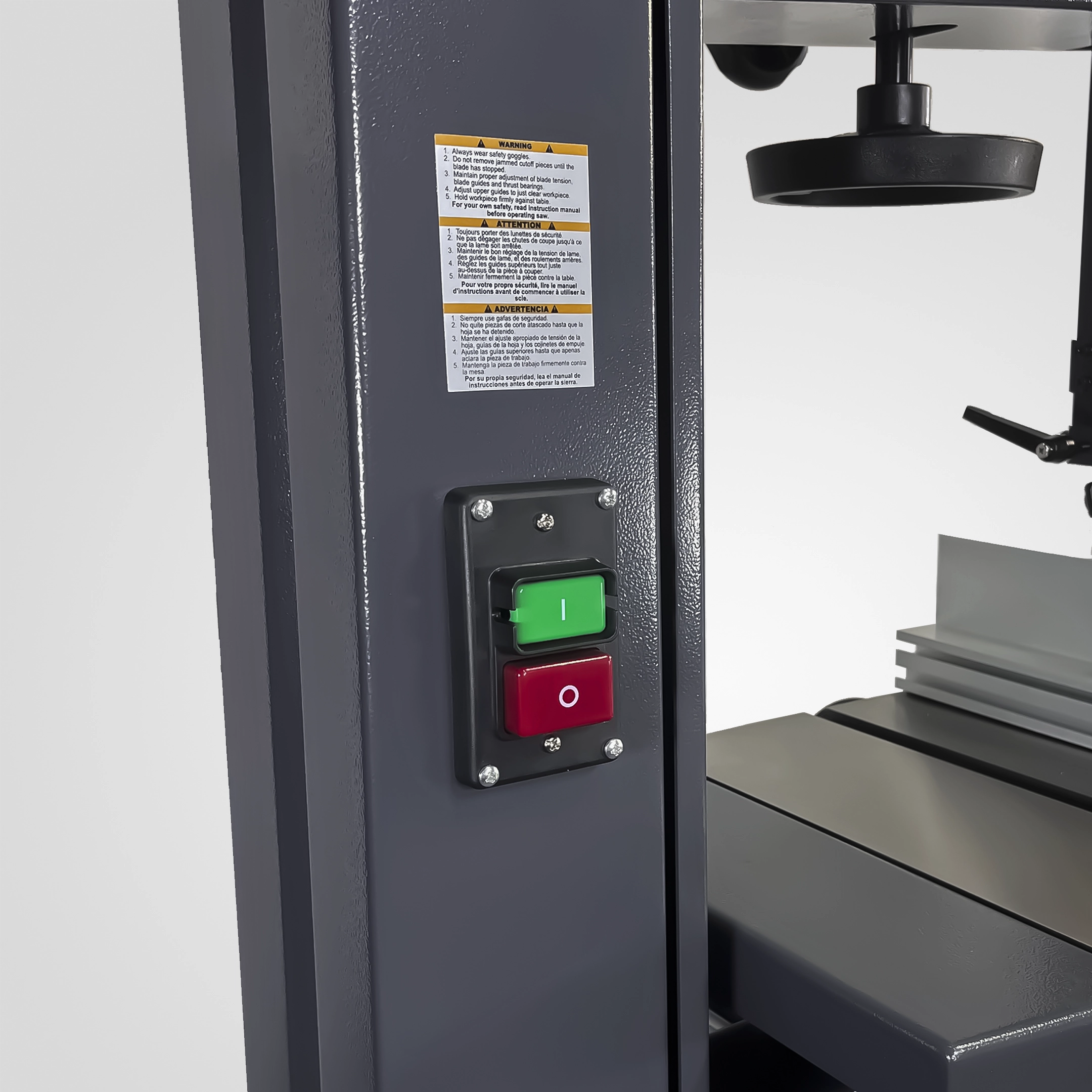 Botonera de arranque y paro para un control conveniente de la sierra.