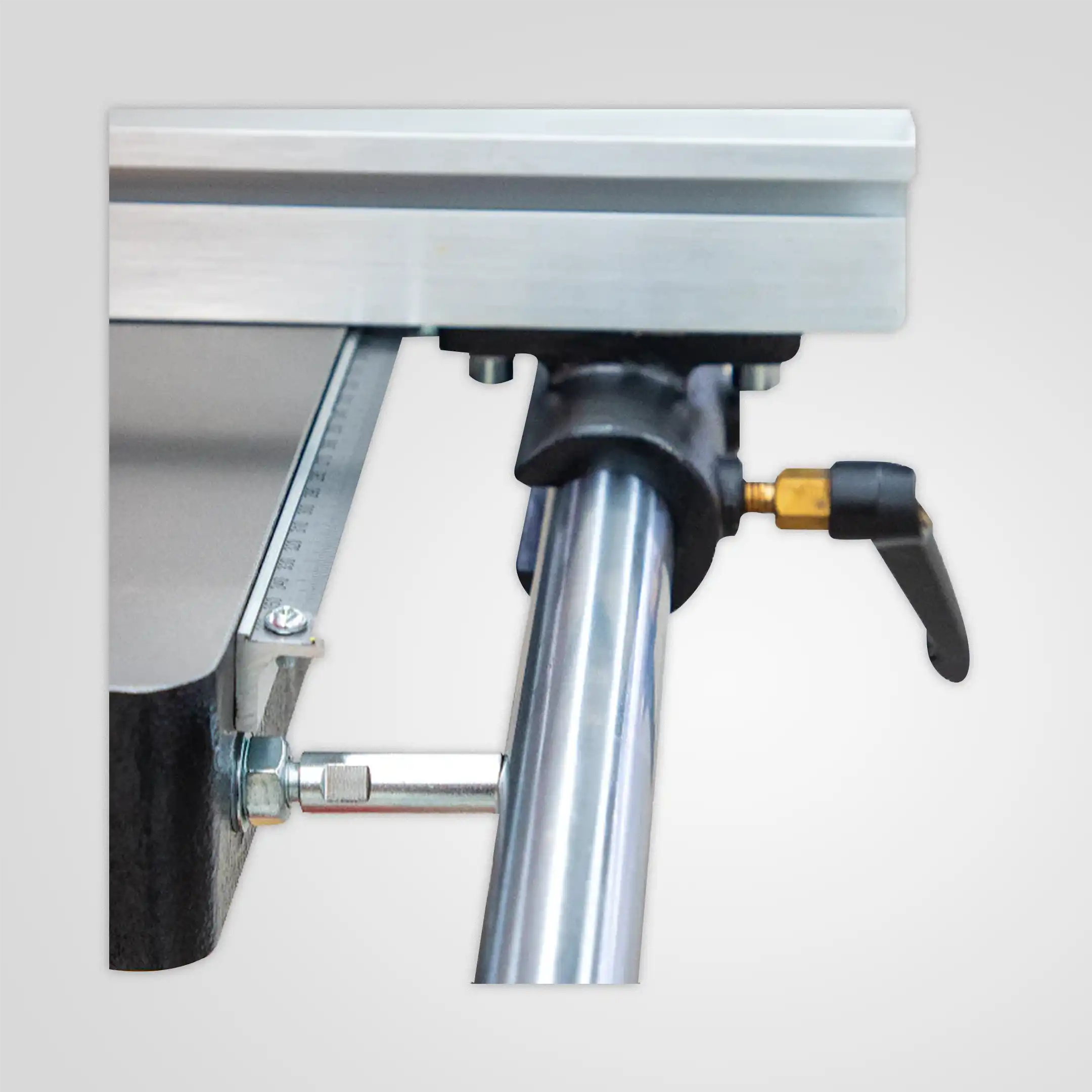 Guía transportadora (miter gauge) de -45° a 45° para cortes angulares.