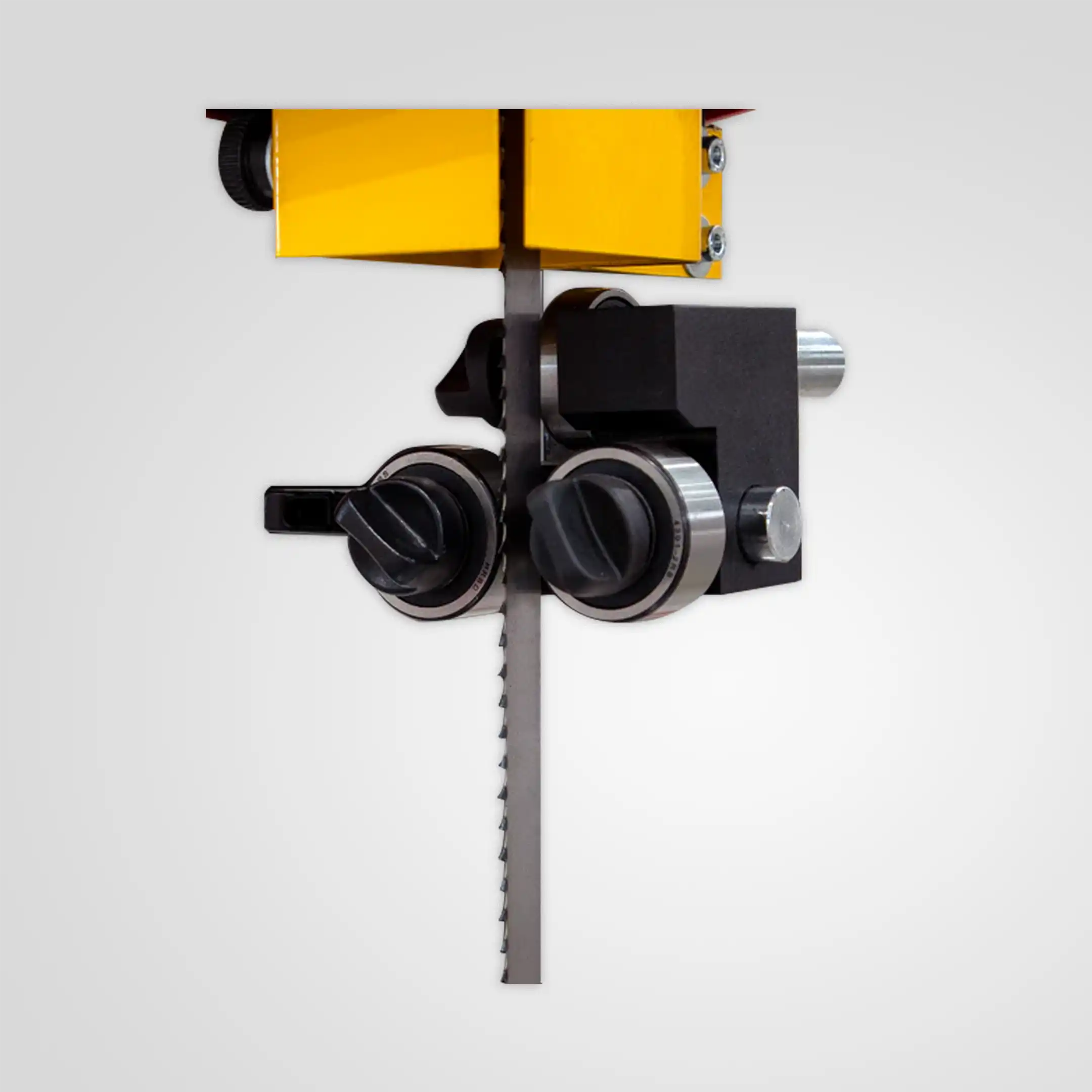 Guía de sierra con rodamientos de microajuste para cortes precisos.