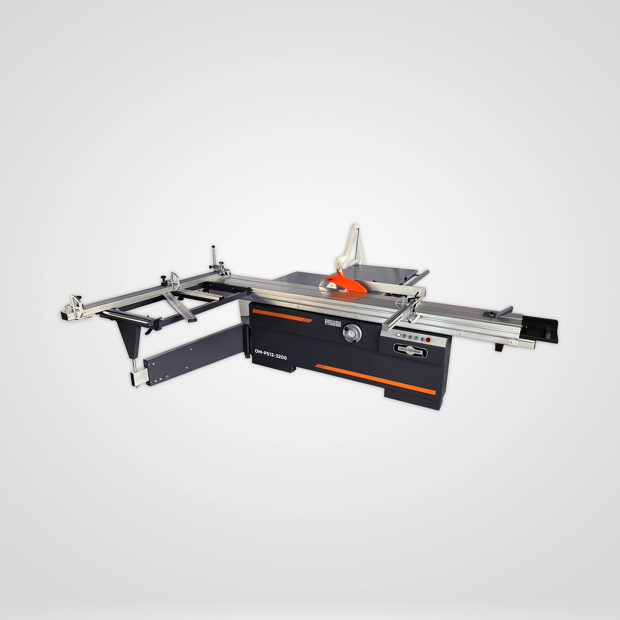 La OM-PS12-3200 es la solución definitiva. Con un motor monofásico de 4 HP y un carro de 3.2 metros, este modelo está diseñado para enfrentar los retos más grandes y pesados, como el corte de tableros industriales, puertas de gran tamaño o materiales densos. Este modelo destaca en entornos de producción a gran escala, ofreciendo cortes de precisión milimétrica en piezas de gran longitud.