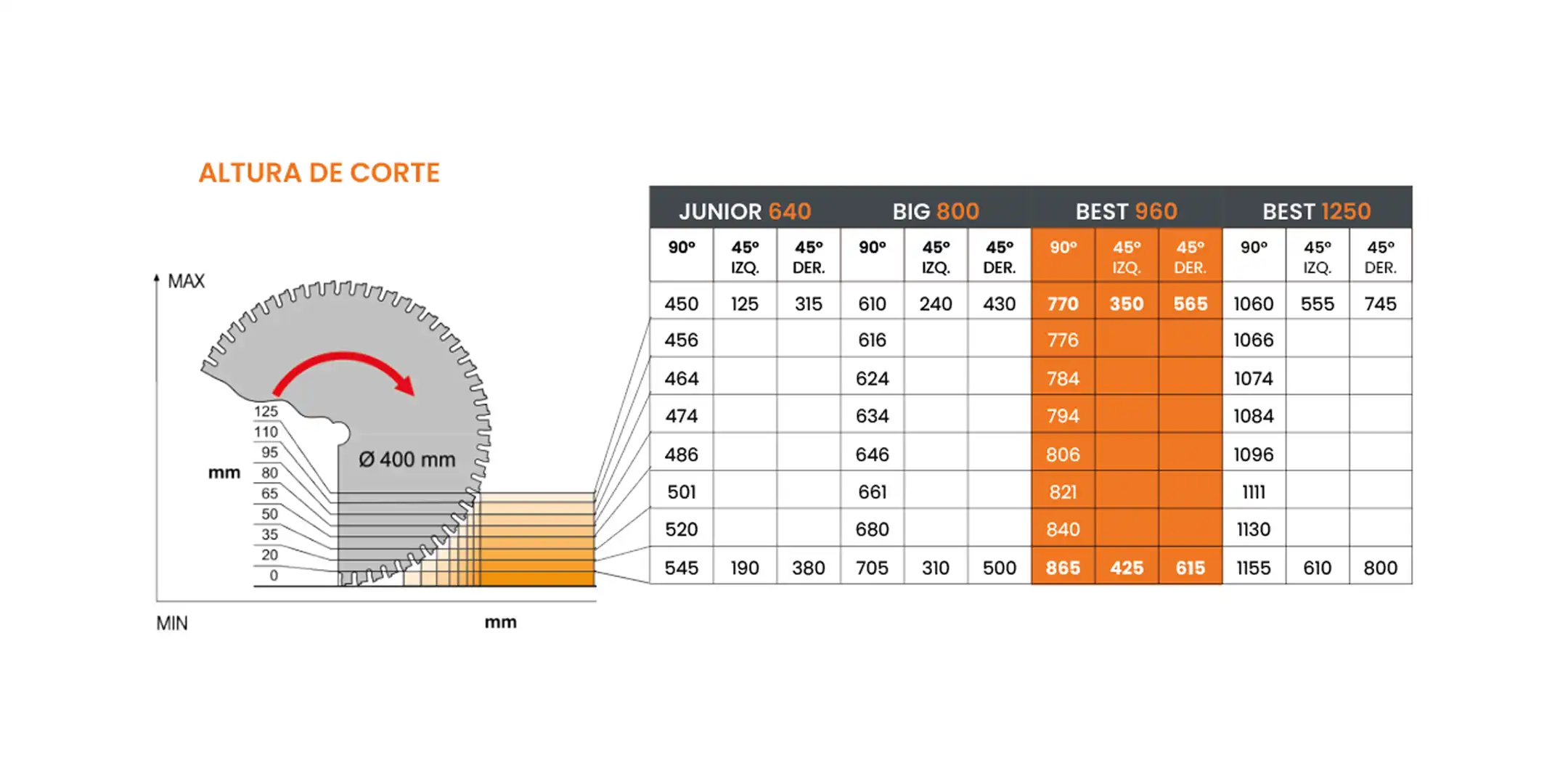 La Sierra Radial Maggi BEST 960 se caracteriza por su robustez y precisión, siendo ideal para talleres que buscan eficiencia en cortes extensos y complejos de materiales basados en madera y madera sólida.