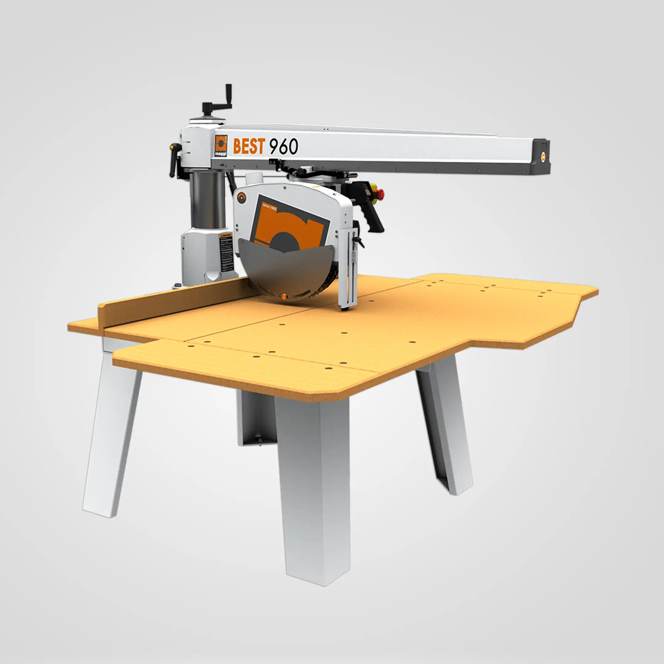Esta máquina es perfecta para la fabricación de muebles y carpintería, ofreciendo una operación segura y exacta con capacidad para manejar piezas de hasta 3 metros. Con una estructura de acero sólido y un brazo de hierro fundido, la BEST 960 asegura cortes precisos y suaves, gracias a su cabeza de corte que se desliza sobre ocho rodamientos de bolas.