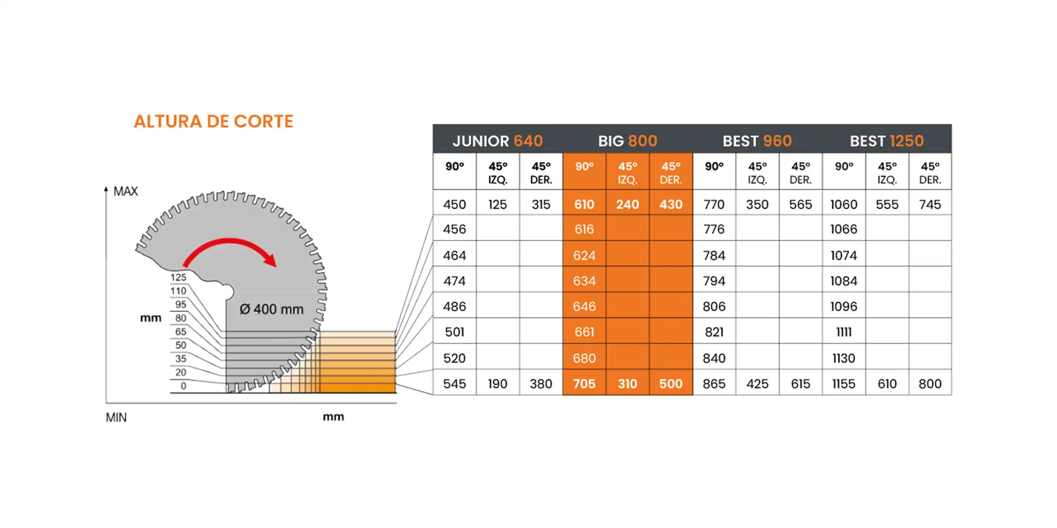Con un diseño que optimiza el espacio y mejora la seguridad del operador, la BIG 800 es ideal para la fabricación de muebles y carpintería en general.