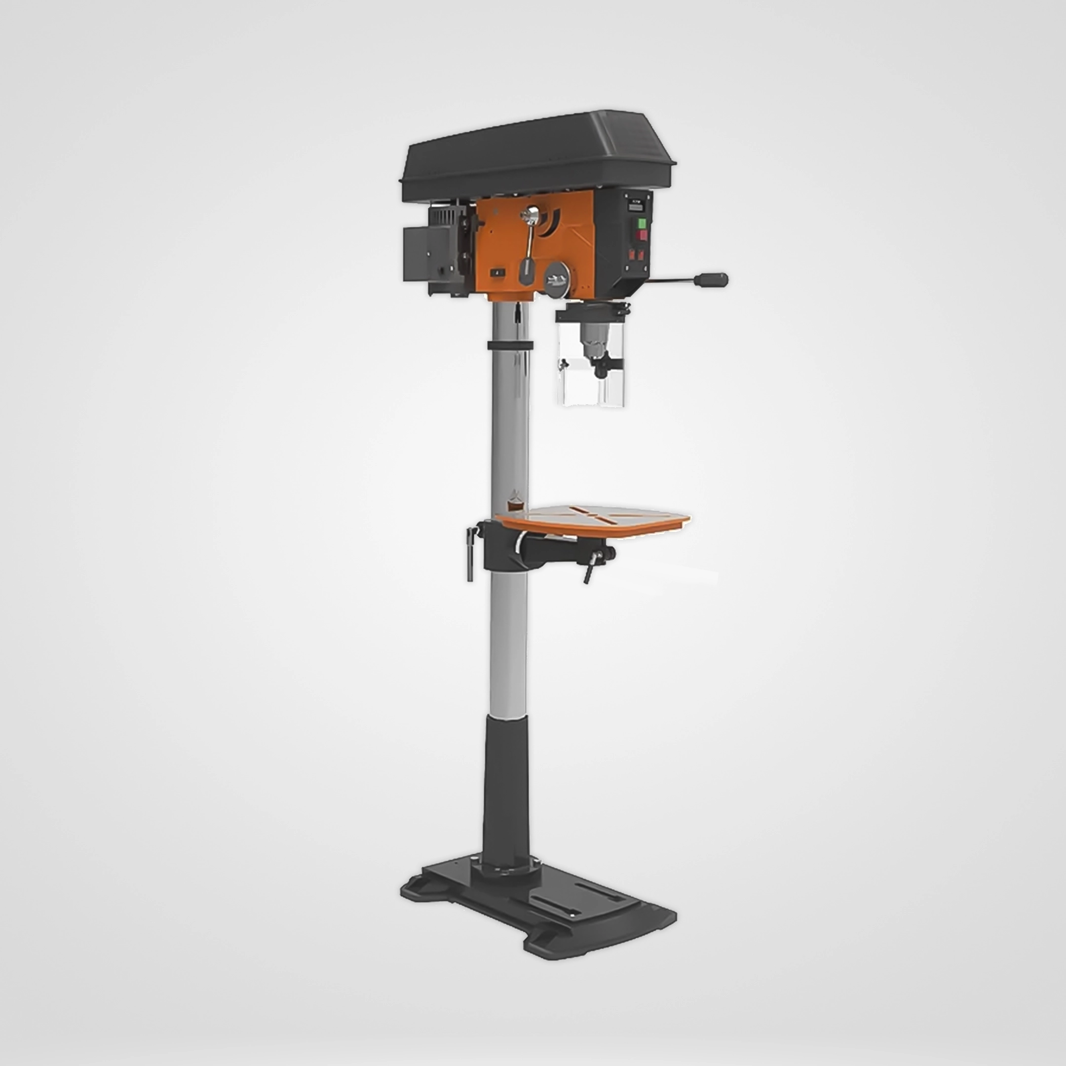 En operación, permite ajustar la velocidad según el material y el diámetro de broca, favoreciendo perforaciones más limpias y mayor control en trabajos repetitivos. Su diámetro de rotación de 430 mm brinda capacidad para manejar piezas de mayor tamaño, y la base de 535 mm x 380 mm aporta estabilidad al equipo, reduciendo movimientos indeseados durante el trabajo.